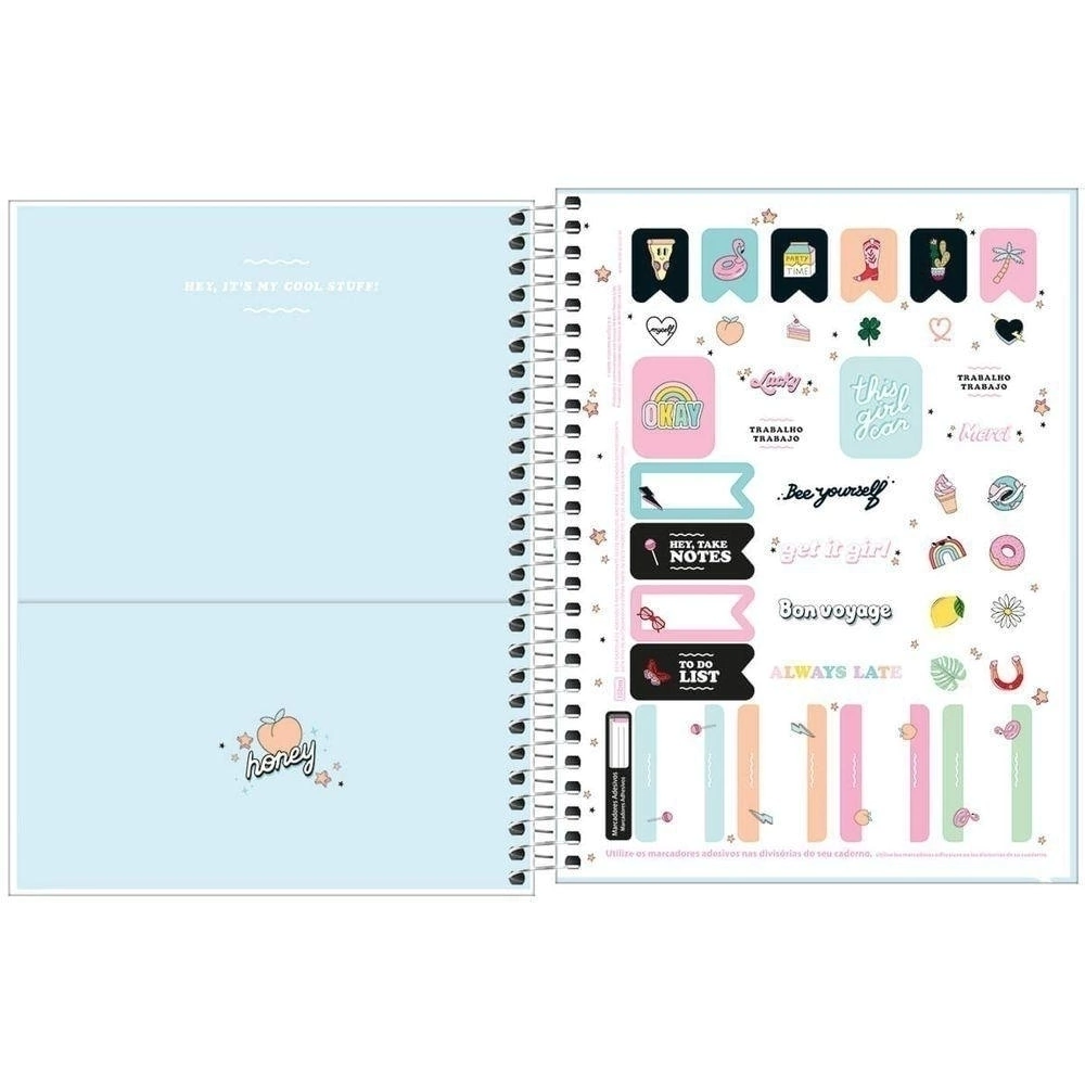 Os cadernos da Tilibra em parceria com a Capricho são sempre lindos e super moderninhos! Com capas incriveis e interior todo decorado, eles deixam qualquer atividade mais divertida! Caderno Espiral de 10 matérias, super bem dividido tem o espaço certinho pra você anotar datas de provas e compromissos importantes. Além de poder todas as suas anotações em um só lugar, você ainda vai deixar seu material escolar mais bonito!! Possui capa dura com a parte interna decorada, bolsa de papel decorada para guardar trabalhos e anotações, folha com adesivos funcionais, folhas pautadas decoradas, espiral colorido e divisórias entre as matérias. Ideal para o dia a dia na escola ou na faculdade.